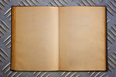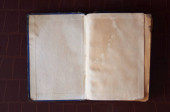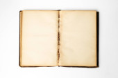 Stara, podarta i pożółkła książka z pustymi kartkami.