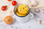 sos czosnkowy na białym stole. Uniwersalny sos czosnkowy.
