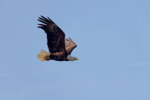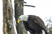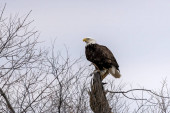Łysy orzeł siedzący na brzegu jeziora Michigan