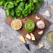 szpinak w kremowym sosie. szpinak sos czosnkowy na ciemnym tle.