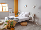 Stylowe wnętrze nowoczesnej sypialni z roślinami