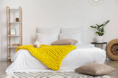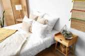 Zdjęcie "Nowoczesne wnętrze przytulnej sypialni" może być wykorzystywane do celów osobistych i komercyjnych zgodnie z warunkami zakupionej licencji Royalty-free. Obraz jest dostępny do pobrania w jakości wysokiej rozdzielczości do 5760x3840.