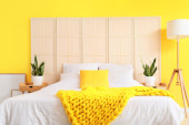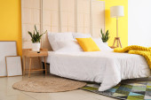 Zdjęcie "Nowoczesne wnętrze przytulnej sypialni" może być wykorzystywane do celów osobistych i komercyjnych zgodnie z warunkami zakupionej licencji Royalty-free. Obraz jest dostępny do pobrania w jakości wysokiej rozdzielczości do 5760x3840.