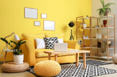 Zdjęcie "Wazon z gałęziami drzew i różne pisanki na drewnianym stole w pobliżu sofy we wnętrzu pokoju" może być wykorzystywane do celów osobistych i komercyjnych zgodnie z warunkami zakupionej licencji Royalty-free. Obraz jest dostępny do pobrania w jakości wysokiej rozdzielczości do 5760x3840.