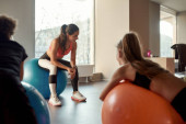 Dziewczyny korzystające z aplikacji na tablecie cyfrowym w siłowni