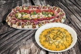 Płyta z ossobuco wykonana z poprzecznie krojonego cielęcego trzonka. gulasz mięsny ossobuco.