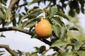Zdjęcie "zieloną gruszkę z czerwoną stroną wiszącą na drzewie z liśćmi haebalu. Zbieranie owoców rośnie latem, gdy owoc gruszki rośnie. Rolnictwo ekologiczne." może być wykorzystywane do celów osobistych i komercyjnych zgodnie z warunkami zakupionej licencji Royalty-free. Obraz jest dostępny do pobrania w jakości wysokiej rozdzielczości do 5760x3840.