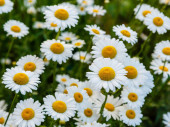 Pyrethrum parthenium (Złoty Mech) w słonecznym ogrodzie letnim