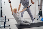 Zdjęcie "Starsza kobieta trenuje z hantlami w każdej ręce" może być wykorzystywane do celów osobistych i komercyjnych zgodnie z warunkami zakupionej licencji Royalty-free. Obraz jest dostępny do pobrania w jakości wysokiej rozdzielczości do 5760x3840.