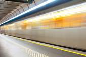 Metro w ruchu rozmycie w arts et Métiers stacji metra w Paryżu, Francja