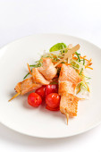 Zdjęcie "kebab z kurczaka ze świeżą sałatką, widok z góry" może być wykorzystywane do celów osobistych i komercyjnych zgodnie z warunkami zakupionej licencji Royalty-free. Obraz jest dostępny do pobrania w jakości wysokiej rozdzielczości do 5760x3840.