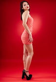 Piękny rozmiar plus kobieta z tatuażami w czarnej mini sukience, inkluzywność i akceptacja ciała