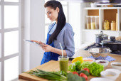Zdjęcie "Młoda kobieta ze szklanką smacznego zdrowego smoothie przy stole w kuchni" może być wykorzystywane do celów osobistych i komercyjnych zgodnie z warunkami zakupionej licencji Royalty-free. Obraz jest dostępny do pobrania w jakości wysokiej rozdzielczości do 5760x3840.