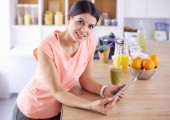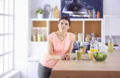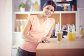 Młoda kobieta siedzi przy stole w kuchni