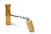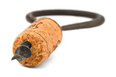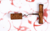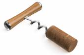 Korkociąg i korek z plamami wina izolowanymi na białym