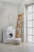 Zdjęcie "Pralka w łazience, zestawy do sprzątania, w stylu narożnym, obiekt dekoracyjny, ręcznik, szczotka, brudne ubrania." może być wykorzystywane do celów osobistych i komercyjnych zgodnie z warunkami zakupionej licencji Royalty-free. Obraz jest dostępny do pobrania w jakości wysokiej rozdzielczości do 5760x3840.