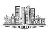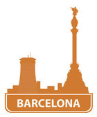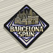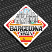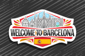 Ilustracja wektorowa Barcelony, znak poziomy z liniowym wzorem słynnego krajobrazu miasta barcelona na tle dziennego nieba, europejska koncepcja sztuki miejskiej linii z dekoracyjnym napisem dla słowa barcelona