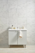Zdjęcie "Nowoczesne zestawy do czyszczenia łaźni biały szafka i zlewozmywak, lustro, styl mydła." może być wykorzystywane do celów osobistych i komercyjnych zgodnie z warunkami zakupionej licencji Royalty-free. Obraz jest dostępny do pobrania w jakości wysokiej rozdzielczości do 5760x3840.