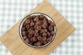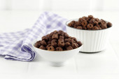 Pyszne i pożywne płatki owocowe aromatyczne w szklanej misce na białym tle