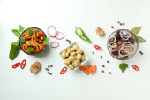 Koncepcja smacznej żywności z wołowiną z warzywami, widok z góry