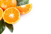 Mandarynka z liśćmi na białym tle, miejsce na tekst