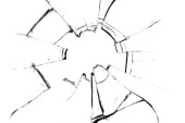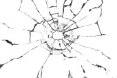 Tekstura stłuczonego szkła. Dziura po kulach