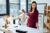 młody pewny siebie ciężarna businesswoman w smart casualwear