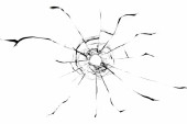 Tekstura stłuczonego szkła. Dziura po kulach