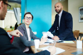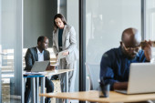 Zdjęcie "Młoda ciężarna bizneswoman pochylająca się nad biurkiem kolegi" może być wykorzystywane do celów osobistych i komercyjnych zgodnie z warunkami zakupionej licencji Royalty-free. Obraz jest dostępny do pobrania w jakości wysokiej rozdzielczości do 5760x3840.