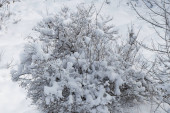 Zdjęcie "Zbliżenie szczegółowy fotografia drobny leśny krzak z duży śnieg padam na one. Zdjęcie zrobione w chłodny grudniowy dzień." może być wykorzystywane do celów osobistych i komercyjnych zgodnie z warunkami zakupionej licencji Royalty-free. Obraz jest dostępny do pobrania w jakości wysokiej rozdzielczości do 5760x3840.