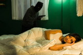 Tajemniczy młody człowiek w kapturze, używający broni i myślący o następnym przestępstwie.