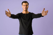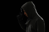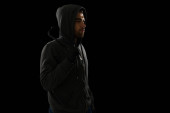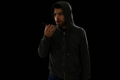 Młody handlarz narkotyków sprzedający narkotyki rekreacyjne i pigułki na ulicy w ciemną noc