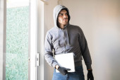 Zdjęcie "Portret nieznanego hakera ukrywającego się w cieniu z laptopem do nielegalnego hakowania" może być wykorzystywane do celów osobistych i komercyjnych zgodnie z warunkami zakupionej licencji Royalty-free. Obraz jest dostępny do pobrania w jakości wysokiej rozdzielczości do 5760x3840.