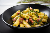 Zdjęcie "Jedzenie. Zbliżenie pyszne włoskie makaron" może być wykorzystywane do celów osobistych i komercyjnych zgodnie z warunkami zakupionej licencji Royalty-free. Obraz jest dostępny do pobrania w jakości wysokiej rozdzielczości do 5760x3840.
