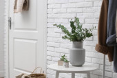 Wnętrze przedpokoju ze stołem konsolowym i stylowym wystrojem