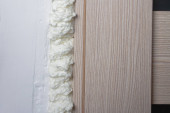 Montaż drzwi w pomieszczeniu w drzwiach, mocowanie drzwi pianką montażową.