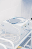 Zdjęcie "Pusta sala operacyjna i nowoczesny sprzęt w szpitalu. Urządzenie medyczne dla chirurga chirurgicznego pacjenta w niebieskim tonie. Zachowaj koncepcję leczenia życia" może być wykorzystywane do celów osobistych i komercyjnych zgodnie z warunkami zakupionej licencji Royalty-free. Obraz jest dostępny do pobrania w jakości wysokiej rozdzielczości do 5760x3840.