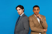młoda Azjatka kobieta i brunetka mężczyzna w formalnym stroju patrząc na aparat odizolowany na szary