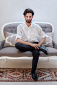 Zdjęcie "pełny widok długości człowieka w żółtej kamizelce i spodnie siedzi w fotelu na szarości" może być wykorzystywane do celów osobistych i komercyjnych zgodnie z warunkami zakupionej licencji Royalty-free. Obraz jest dostępny do pobrania w jakości wysokiej rozdzielczości do 5760x3840.