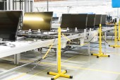 Zdjęcie linii produkcyjnej samochodów. Korpus samochodu spawalniczego. Nowoczesna fabryka samochodów. Przemysł samochodowy