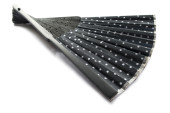 Close up of half closed leżący czarny klasyczny wentylator wentylatora chłodne powietrze w upalne dni na białym tle hiszpańskiej kultury i żałoba koncepcja