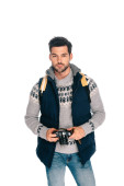 Zdjęcie "modny mężczyzna w białym swetrze i ciemnych okularach przeciwsłonecznych patrząc na aparat odizolowany na szarości" może być wykorzystywane do celów osobistych i komercyjnych zgodnie z warunkami zakupionej licencji Royalty-free. Obraz jest dostępny do pobrania w jakości wysokiej rozdzielczości do 5760x3840.