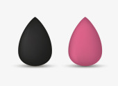 Ustaw gąbkę do makijażu. Czarna gąbka do mieszania fundamentów, gąbka fundamentowa izolowana na białym tle. Ilustracja wektora