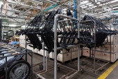 Nowoczesna fabryka samochodów. Przemysł samochodowy. Wnętrze nowoczesnej fabryki, nowoczesna produkcja
