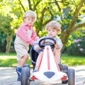 Zdjęcie "Cute little girl i chłopca szkoły bawiąc się niebieski mały samochód zabawki w ogrodzie domu lub przedszkola. Maluch siostra i brat dzieci dobrze się bawią razem." może być wykorzystywane do celów osobistych i komercyjnych zgodnie z warunkami zakupionej licencji Royalty-free. Obraz jest dostępny do pobrania w jakości wysokiej rozdzielczości do 5760x3840.