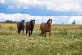 konie na zielonej łące, lato, słońce.