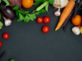 Świeże rolnicy rynku owoców i warzyw z góry z miejsca na ksero na drewnianym stole, zdrowej koncepcji żywności
