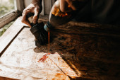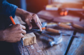 Zdjęcie "Starszy stary stolarz przy użyciu piły pracującej na rzemiośle w warsztacie do produkcji materiałów budowlanych lub mebli drewnianych." może być wykorzystywane do celów osobistych i komercyjnych zgodnie z warunkami zakupionej licencji Royalty-free. Obraz jest dostępny do pobrania w jakości wysokiej rozdzielczości do 5760x3840.