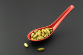 Zdjęcie "Spice Green Cardamom na drewnianej łyżce izolowane na białym tle. Zielony kardamon to pachnące zioło używane jako składnik do gotowania. " może być wykorzystywane do celów osobistych i komercyjnych zgodnie z warunkami zakupionej licencji Royalty-free. Obraz jest dostępny do pobrania w jakości wysokiej rozdzielczości do 5760x3840.