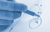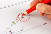 szpilki na szkicu czerwona strzałka wskazuje